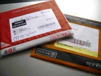 赤い封筒が楽天、黒にオレンジが@nifty。