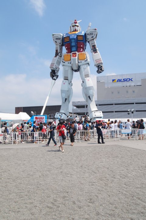 去年はガンダム放映30周年ということで東京はお台場で実物大のガンダム像が公開された。キャンペーンが終わると像はお台場から撤去されたもののどこかに保管されていたらしく、今年は静岡で「ガンプラ誕生30周年」の名目で再公開されることになった。「ガンプラ」とはガンダムのプラモデルの略で、丁度自分が小学校高学年から中学にかけて大ブームが起きていた。あれからもう30年? そんなに経ったかなあ。小遣い握りしめておもちゃ屋に走ったがついこの前のように思えるんだけど……まあ、時の流れの無常さはこの際置いておいて、生まれながらのガンダムファンとしては、再び大地に立ったガンダムを見逃すわけにはいかない。