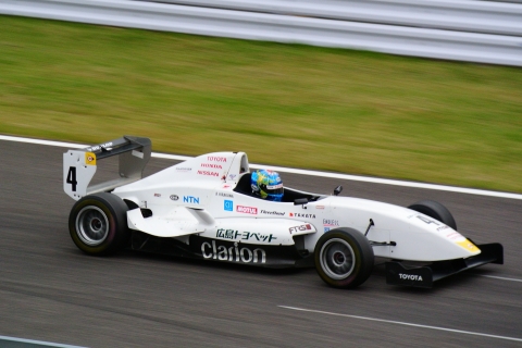 決勝日、午前中はヘアピンコーナーで、サポートレースのFCJ(Formula Challenge Japan)とFニッポンの第一レースを観戦。カメラはNikon D300を装備。