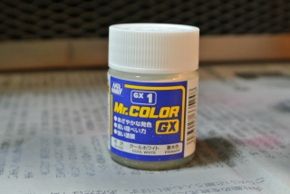 下地にはホワイトサフを使用する。下地を塗ったら、クールホワイト→エプソンブルー→ブラックの順に塗装する予定。