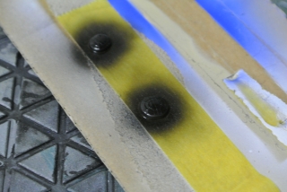 ここで『艦これ』ならではの塗装をするために艦尾の一部をマスキングして……