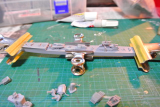 艦首部分にあったへこみをパテで埋めた。